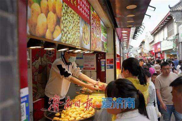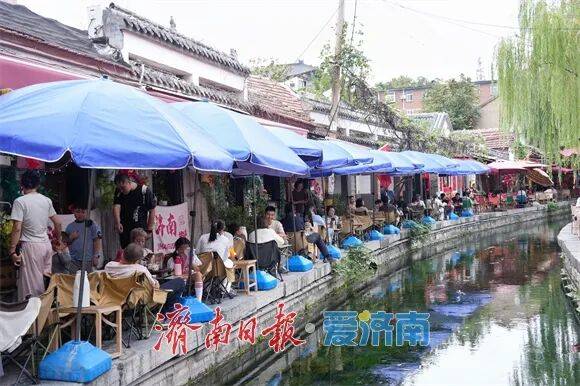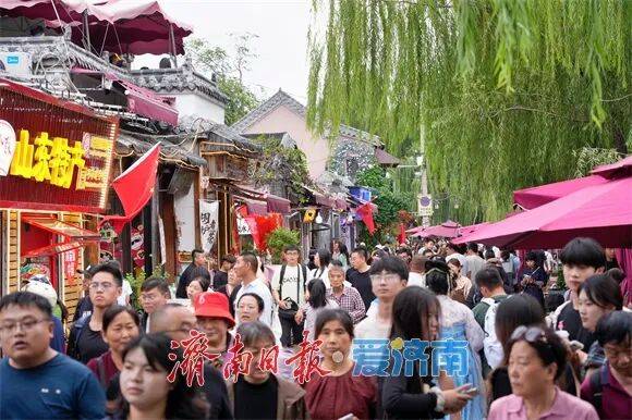 假期首日,曲水亭街已开启“人从众”模式。潺潺流水中倒映着垂柳蓝伞,青石板路上游客摩肩接踵。临泉茶馆内,茉莉花茶在泉水冲泡下香气氤氲,再现“家家泉水、户户垂杨”的泉城风韵。
