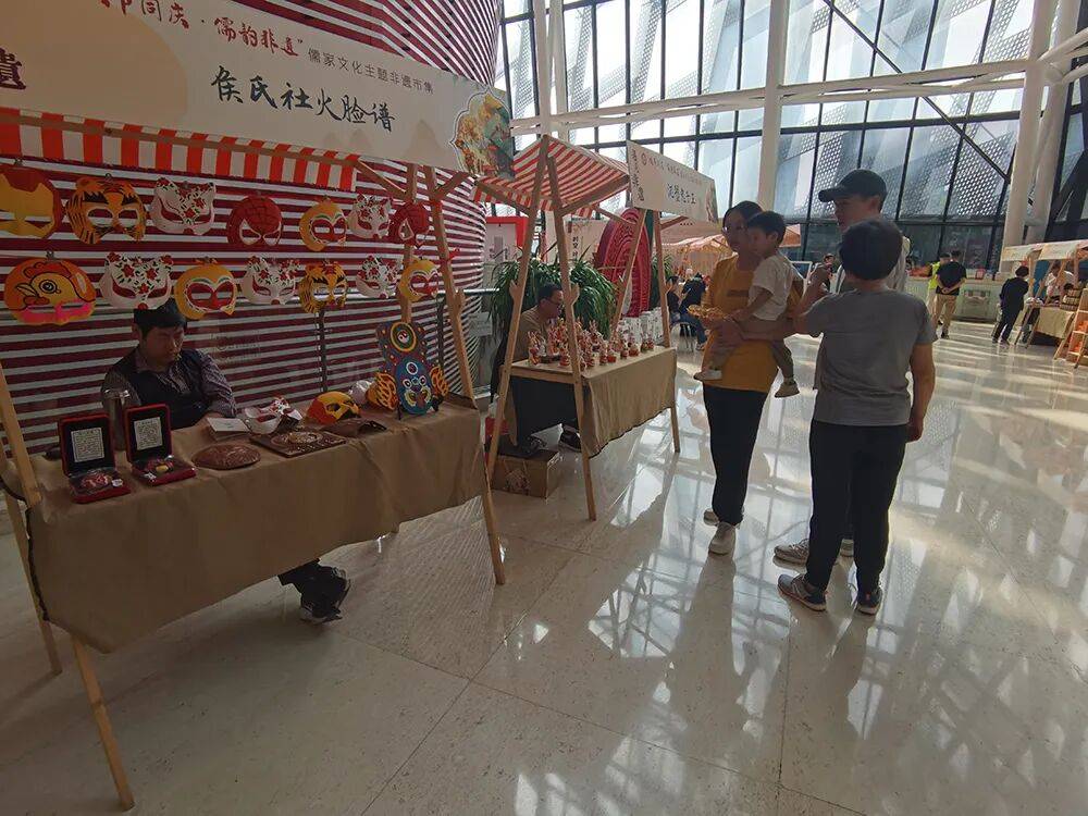 济南市文化馆一楼大厅,非遗市集上热闹非凡。这里既有济南面塑、济南剪纸、兔子王等非遗技艺与艺术品,也有老济南粉肚、鲁式糕点等非遗美食。众多非遗项目让人们在中秋、国庆节日中感受中华优秀传统文化魅力,丰富了节日期间文化生活,彰显济南非遗的内涵。济南市文化馆(济南市非物质文化遗产保护中心)的工作人员和非遗志愿者现场向感兴趣的市民、游客讲解有关非遗的知识。