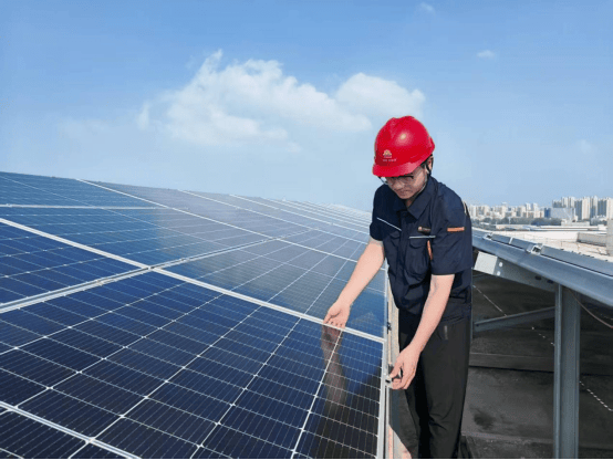 10月1日,国庆假期第一天,在济南能投集团光伏项目中欧制造产业园光伏电站内,运行管理部员工周广江正在对光伏组件开展巡视检查,重点围绕组件清洁度、压块牢固度及支架稳定度等问题进行全面排查,以保障场站安全稳定运行,用坚守诠释责任。