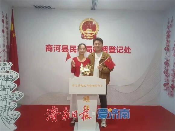 为满足新人们“与国同庆,喜结连理”的美好愿望,商河县民政局婚姻登记处积极准备、落实措施,提前做好“国庆”加班各项准备工作,开展结婚登记预约预审工作,努力做好节日加班服务。新人们手捧鲜艳的五星红旗,在国徽下与挚爱深情对望。镜头定格下一幕幕“中国红”与“结婚红”交相辉映的瞬间。国庆当天,该局共为31对新人办理了结婚登记。
