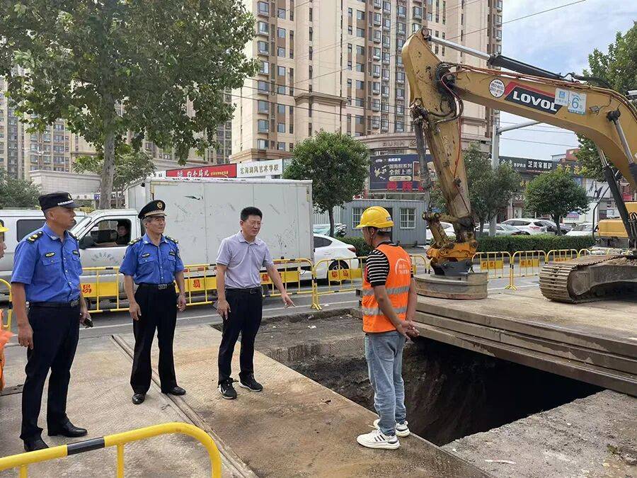 施工扬尘管控同步升级。在泺安路老旧管网改造工程施工现场,针对施工产生的扬尘问题,执勤人员现场调度洒水车进行降尘作业,有效控制扬尘污染,并要求施工单位规范围挡设置,严格落实防尘措施,确保安全文明施工。