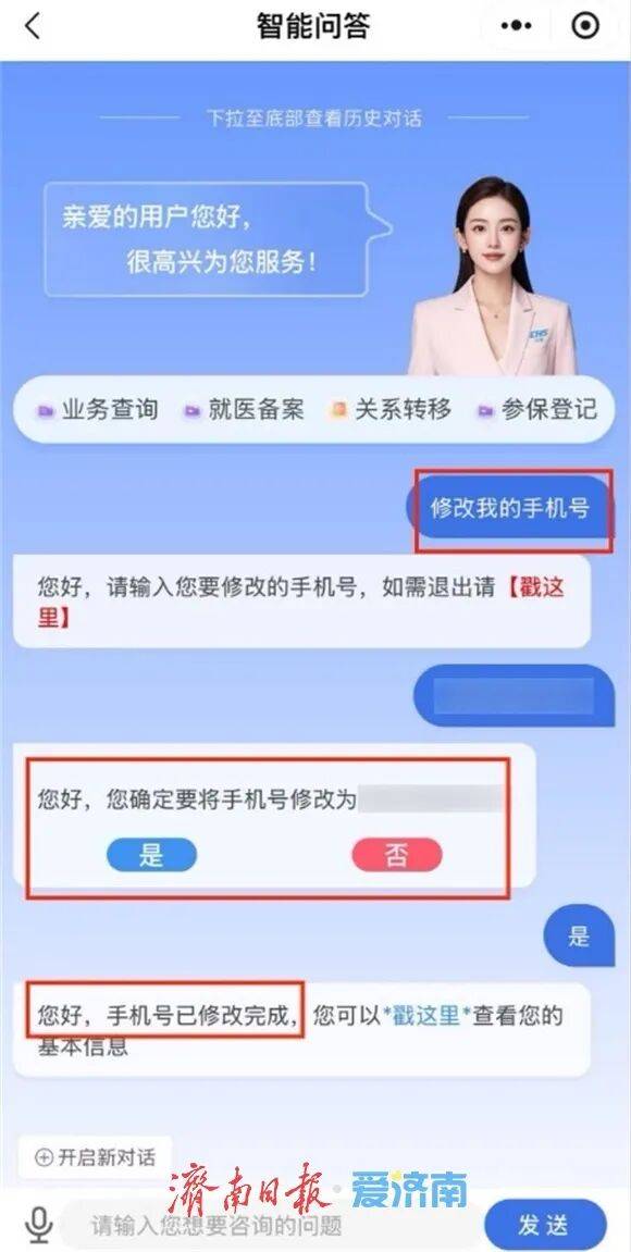 目前,AI医保顾问体系已接入济南医保掌上办理体系,打造专属济南参保人的医保陪“办”员。动态生成个性化回答,让参保人实现边“聊”边办,一键直达33项贴心医保业务。此外,“双节”假期期间济南市各级医保经办值班将全天候为你服务。