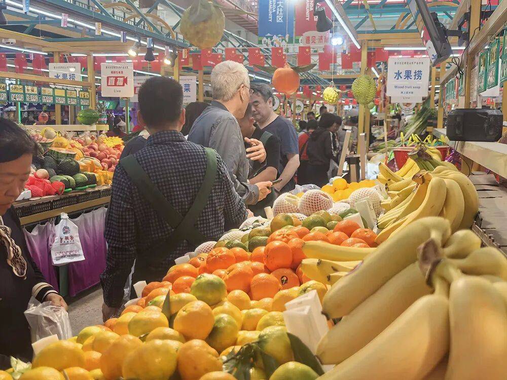 在市中区的郎茂山振大农产品市场,中午时分,迎来客流高峰。蔬菜水灵鲜亮,水果饱满诱人,琳琅满目地堆满摊位。摊主们忙着称重、装袋、收款,充满了热闹的烟火气。市场工作人员介绍,假期期间将正常营业,商户提前做了储备,保证假日“菜篮子”价稳量足。