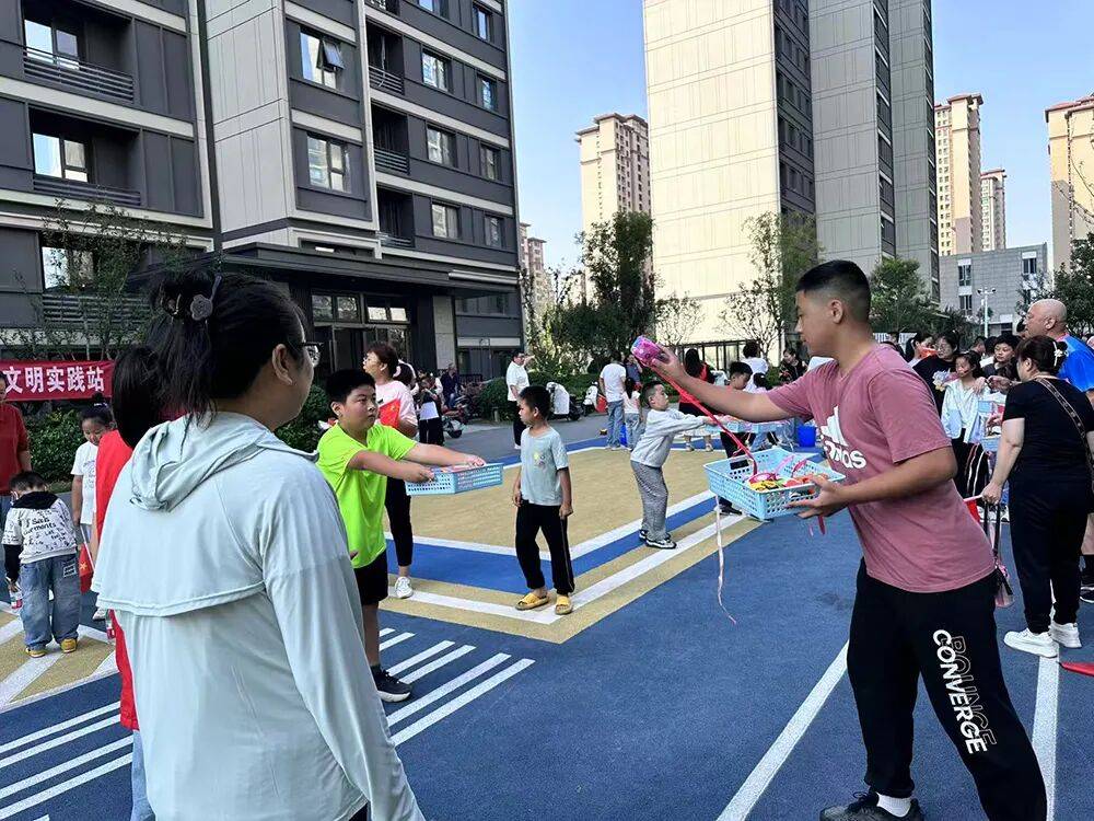 中秋国庆双节之际,孙村街道海棠郡社区开展“情满中秋、欢度国庆”亲子运动会。活动现场,趣味竞技区的沙包投掷、套圈等项目让亲子收获欢乐,文化体验区的诗词背诵、品月饼环节尽显温情。