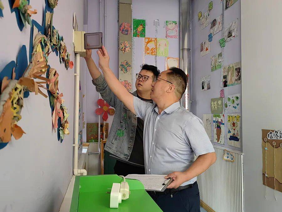 崔广涛的巡查从细节处“较真”:每间教室窗户的锁扣,都伸手拧一拧;饮水机电源插头,必须确认是否拔离插座;就连孩子们作品展架上的挡雨袋,也要检查是否破损,“孩子们不在,这些‘小事’更不能马虎。”转到食堂,他确认留样柜运行状态,反复检查阀门开关,确认完全闭合后才在记录表上打勾。