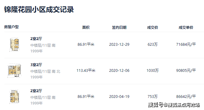 根据锦隆花园过往成交记录,可以看到在楼市火爆的2020年,该小区成交均价在8.8万/平左右,目前挂牌价在7.4万/平左右。