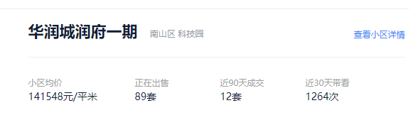 据数据显示,片区热度最高的二手房——华润城润府一期,成交均价14.2万/平。近30天内带看人次高达1264次,即小区日均看房人数高达42人次/天,足以证明“最牛街道”的购买力和热度一直都在。