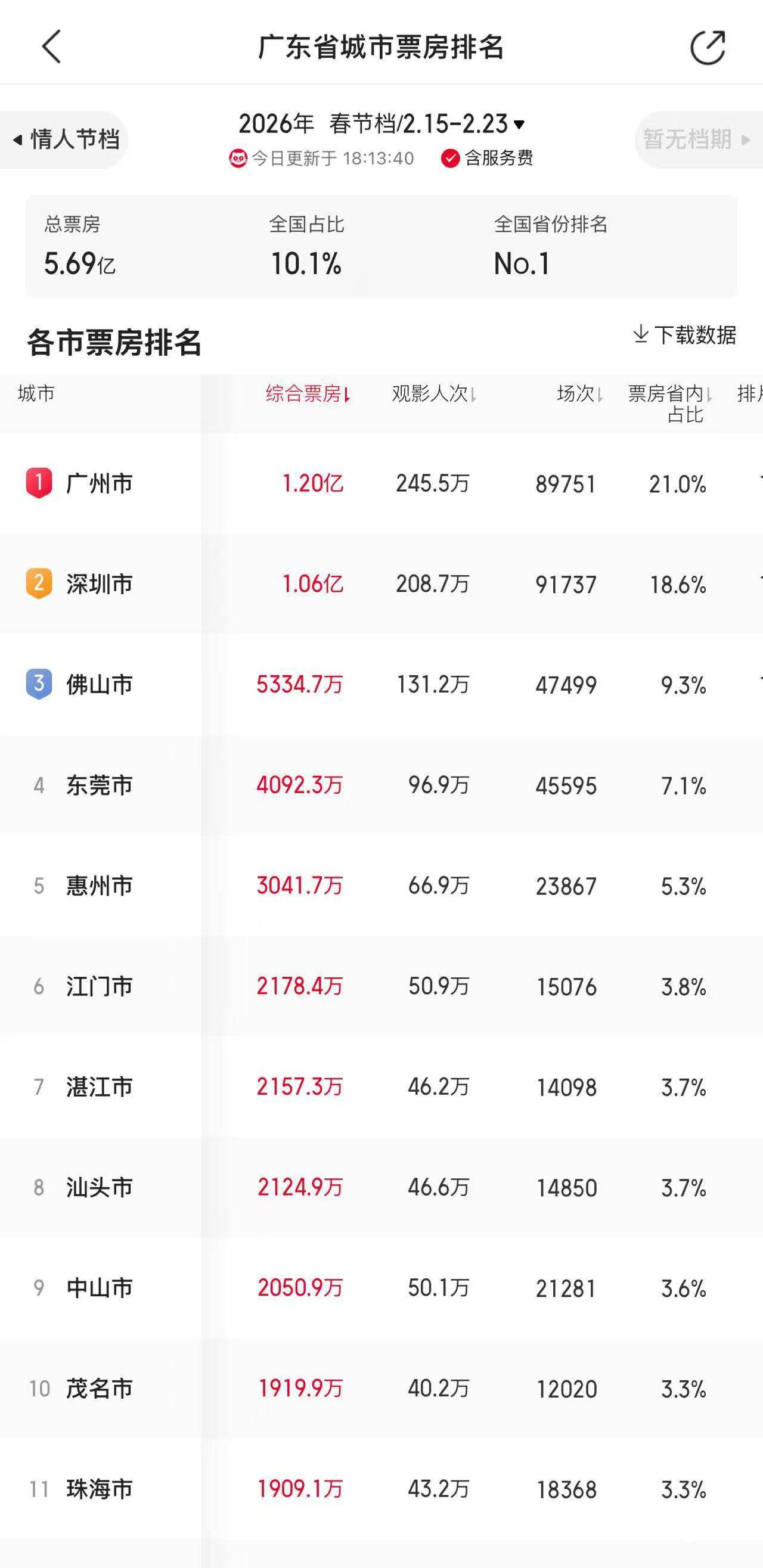 2026年春节档,广东以票房、放映场次和观影人数等多个第一,用实打实的数据印证了“第一票仓”的深厚底蕴。