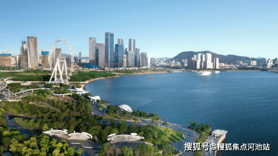 湾区之光摩天轮、湾区之声演艺中心、湾区之眼图书馆等世界地标环绕,公共文化艺木中心与宝安体育馆交相辉映。一路之隔欢乐剧场承办十五全运会闭幕式,以滨海实暑舞台打造全球首个城市全景闭幕式(数据来源:新华社),世界舞台咫尺即享。