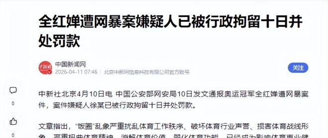 2026-04-14多宝体育,多宝体育官方网站,多宝体育APP下载前阵子刷屏的全红婵被网络暴力事件,不少朋友看到都气得牙痒痒吧?才十几岁的小姑娘,拼尽全力为国家拿下跳水冠军,平日里安安分分,从不招惹谁,结果居然被人拉群专门辱骂,这种事谁看了不心疼啊。好在憋了这么久的案子终于有了结果——核心作案者落网,官方也明确公布了处罚措施。 最初网上只有零星几条恶意言论,谁能想到这帮人胆子这么大,竟然凑了一个两百多人的私密群,赤裸裸冲着全红婵来的。群公告写得明明白白:不许骂其他运动员,全红婵除外。嚣张到这种地步,真是少见。全红婵性格大家都清楚,内向温柔,接受采访时还低着脑袋说,希望大家不要再骂自己,这句话瞬间让无数网友心碎。忍无可忍,全红婵直接报警,广东省二沙体育训练中心也发话,要走法律途径维权,绝不让网暴者有逃路。各大官媒第一时间出面撑腰,央视更是明确表态:为国争光的运动员,轮不到闲人乱抹黑,网络不是法外之地,作妖就必须受罚。不到多久,4月10日,央视公布最新进展,牵头这事的徐某被抓,消息一出立刻冲上热搜,评论区全是大快人心的声音。