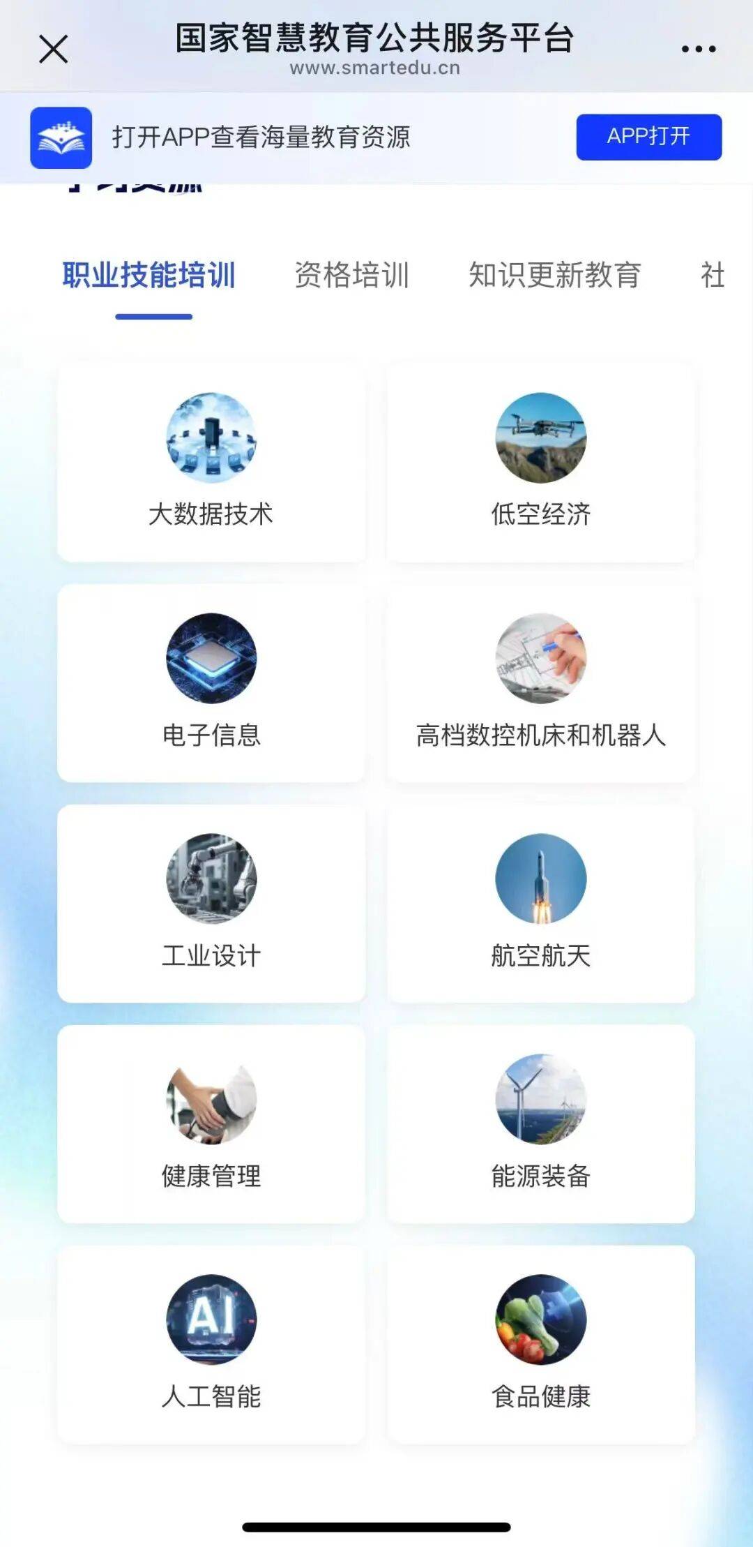 智慧职教平台:聚焦职业技能提升,汇聚专业教学资源库、精品课程、虚拟仿真实训等资源,覆盖各类职业技能方向,助力培养能工巧匠、大国工匠。