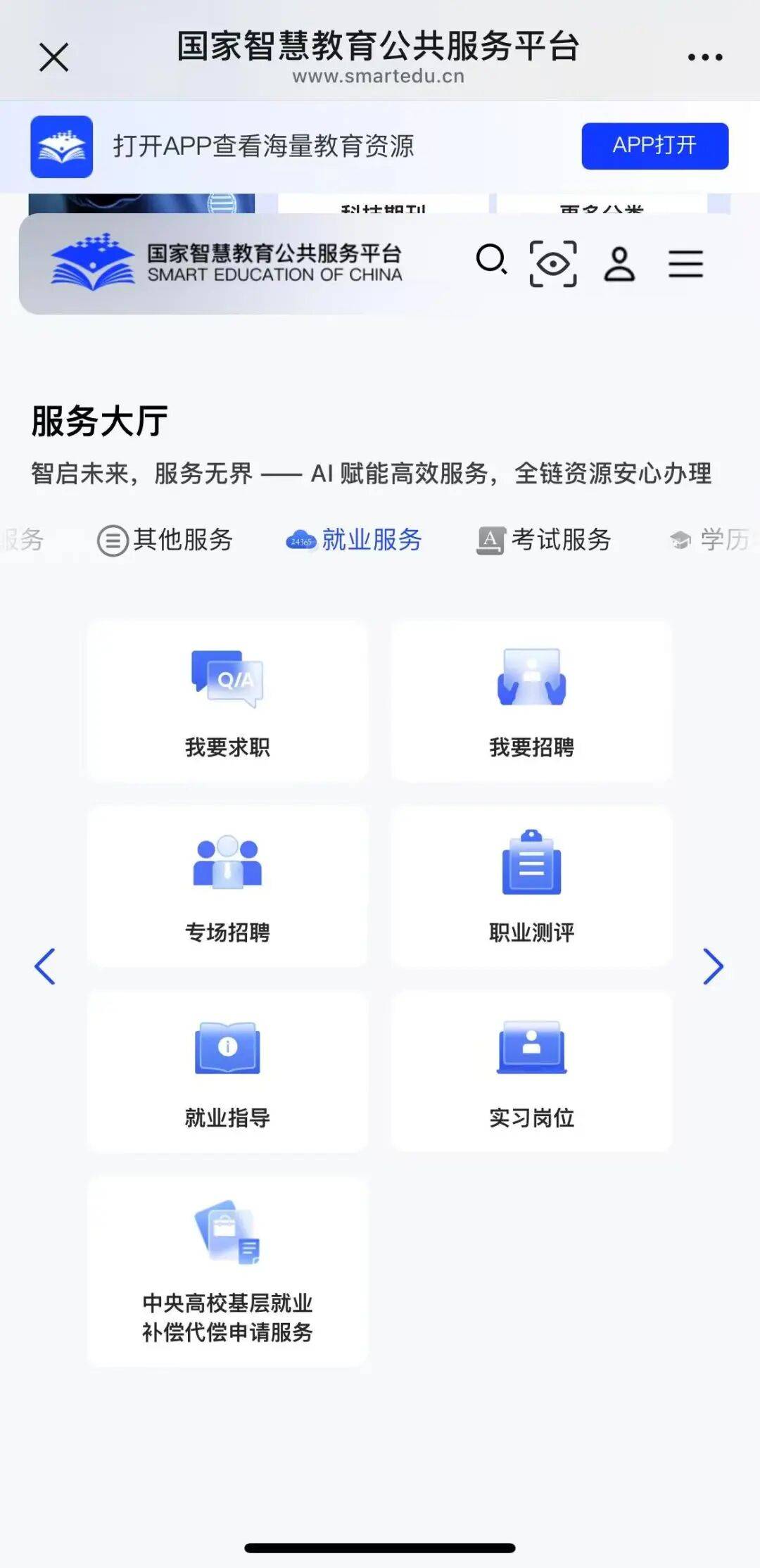 “智启未来,服务无界”为理念,整合8大类、51项政务服务,涵盖就业、考试、学历、学位、留学等高频事项。无论是补办英语四六级成绩证明、查询学籍学历,还是办理教资认定、国(境)外学历学位认证,都能在线便捷办理,真正实现“少跑腿、好办事”。