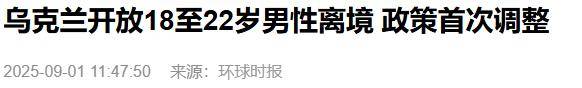 - 《乌克兰开放18至22岁男性离境 政策首次调整》2025-09-01 来源:环球时报